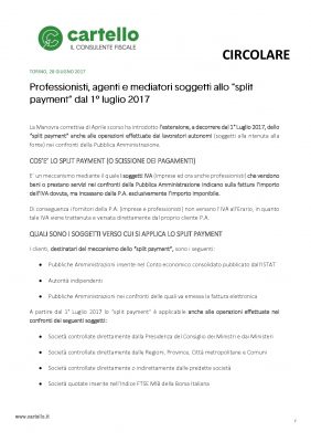 Professionisti, agenti e mediatori soggetti allo “split payment” dal 1° luglio 2017